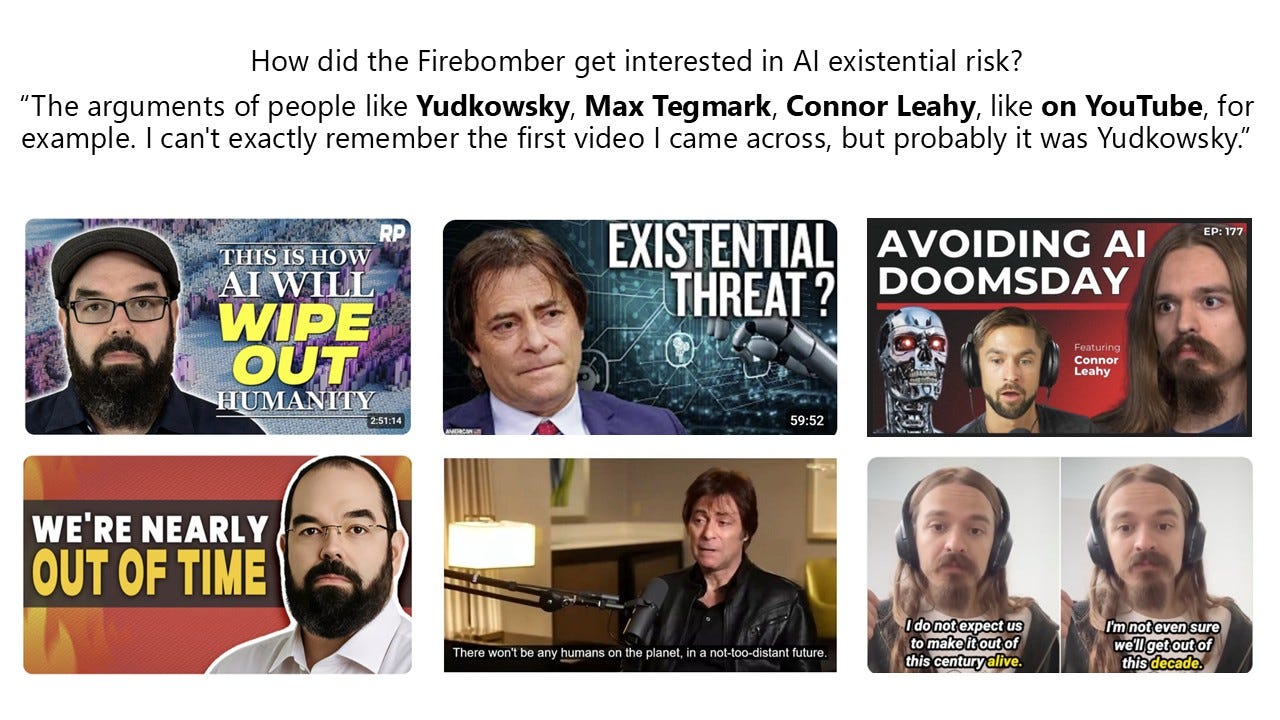 “When prominent AI doomers like Eliezer Yudkowsky keep insisting that human extinction is imminent, it should not be surprising when someone is driven to extreme action. Young, anxious followers, looking for purpose, can be radicalized by apocalyptic AI rhetoric, even without explicit calls for violence.