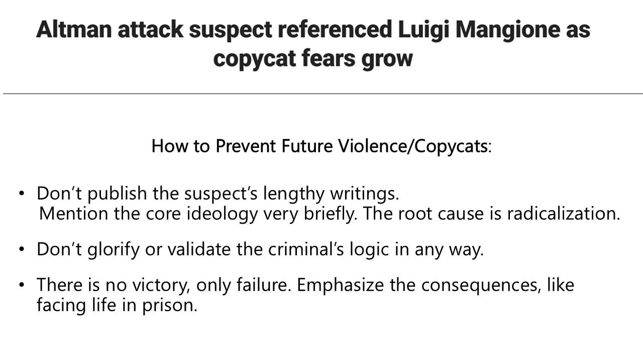 In “Alleged Sam Altman Firebomber Wrote of Fears AI Would End Humanity,” I told the SF Chronicle reporter: